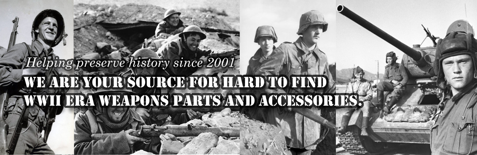 We are your online source for hard to find WWII era weapons parts and accessories. History is our passion, customer satisfaction is our priority. We are a US based small business.